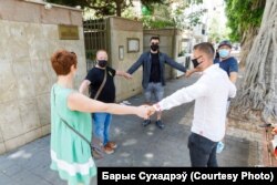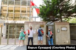 Акцыя салідарнасьці з затрыманымі ў часе прэзыдэнцкай кампаніі ў Беларусі прайшла 20 чэрвеня раніцай каля амбасады Беларусі ў Тэль-Авіве.
