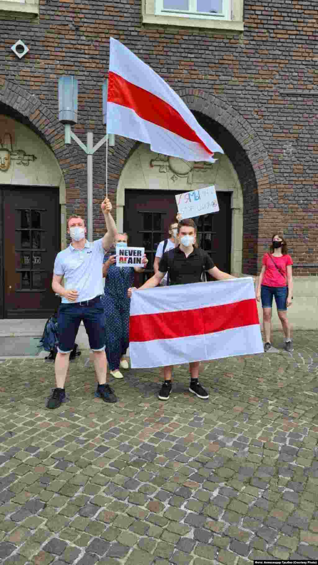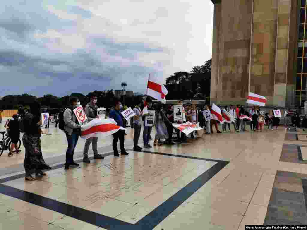 У Парыжы 27 чэрвеня адбылася акцыя ў падтрымку беларусаў, якія цярпяць перасьлед з боку ўладаў падчас выбарчай кампаніі. Фота Аляксандра Грыбко.