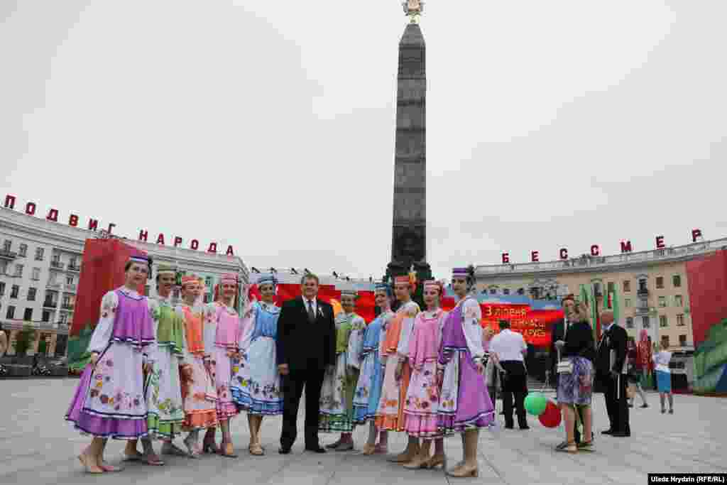 Фотакарэспандэнт Свабоды паназіраў за афіцыйным сьвяткаваньнем Дня незалежнасьці на плошчы Перамогі ў Менску.