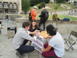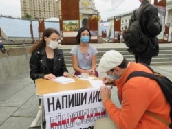 У цэнтры Кіева, на Майдане Незалежнасьці, беларускія і ўкраінскія актывісты зладзілі пікет «Напішы ліст беларускім палітвязьням».