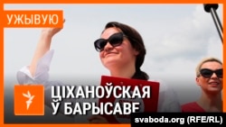 Некаторыя ў Барысаве прыйшлі зь бел-чырвона-белымі сьцягамі. Прыйшлі і людзі з партрэтамі Сьвятланы Ціханоўскай, Веранікі Цапкалы і Марыі Калесьнікавай.