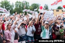 У Бабруйску на агітацыйны пікет прэтэндэнткі на прэзыдэнцтва Сьвятланы Ціханоўскай і яе партнэрак па аб‘яднаным выбарчым штабе Веранікі Цапкалы і Марыі Калесьнікавай сабралася больш за 6000 чалавек.