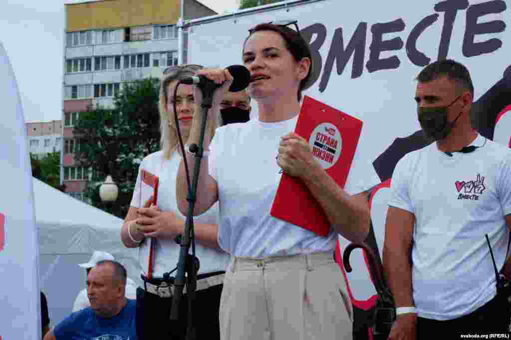 У Рэчыцы на Гомельшчыне адбыўся агітацыйны мітынг Сьвятланы Ціханоўскай. Паводле назіральнікаў, сабралася блізу 2-3 тысяч чалавек.