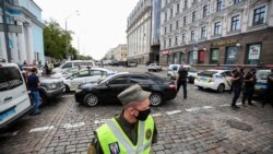 Як паведамляе кіеўская паліцыя, да іх зьвярнулася прадстаўніца банку і паведаміла, што ў аддзяленьне банку ўвайшоў невядомы чалавек ва ўзросьце да 35 гадоў, патрабаваў зьвязацца з паліцыяй і паведаміць, што ў заплечніку мае бомбу.