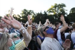 19:20 Людзі пляскаюць і гукаюць «Верым, можам, пераможам!»