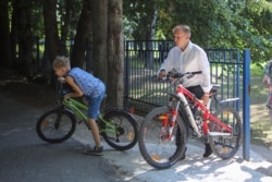 Андрэй Дзьмітрыеў прыехаў на выбарчы ўчастак на ровары, на руцэ ў яго белая стужка