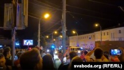 Шмат машын і людзей на скрыжаваньні праспэкта Машэрава і вуліцы Старадаросскай. Сыгналяць кіроўцы машын і тралейбусаў. Сілавікі пачалі выкарыстоўваць сьветлашумавыя гранаты і пэтарды. У 0:55 перакрыты рух трамваяў.
