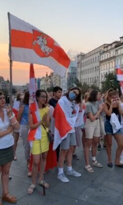 Некалькі сотняў беларусаў пасьля закрыцьця выбарчага ўчастку ў амбасадзе ў Празе сабраліся ў цэнтры Прагі на Вацлаўскай плошчы на мітынг салідарнасьці.