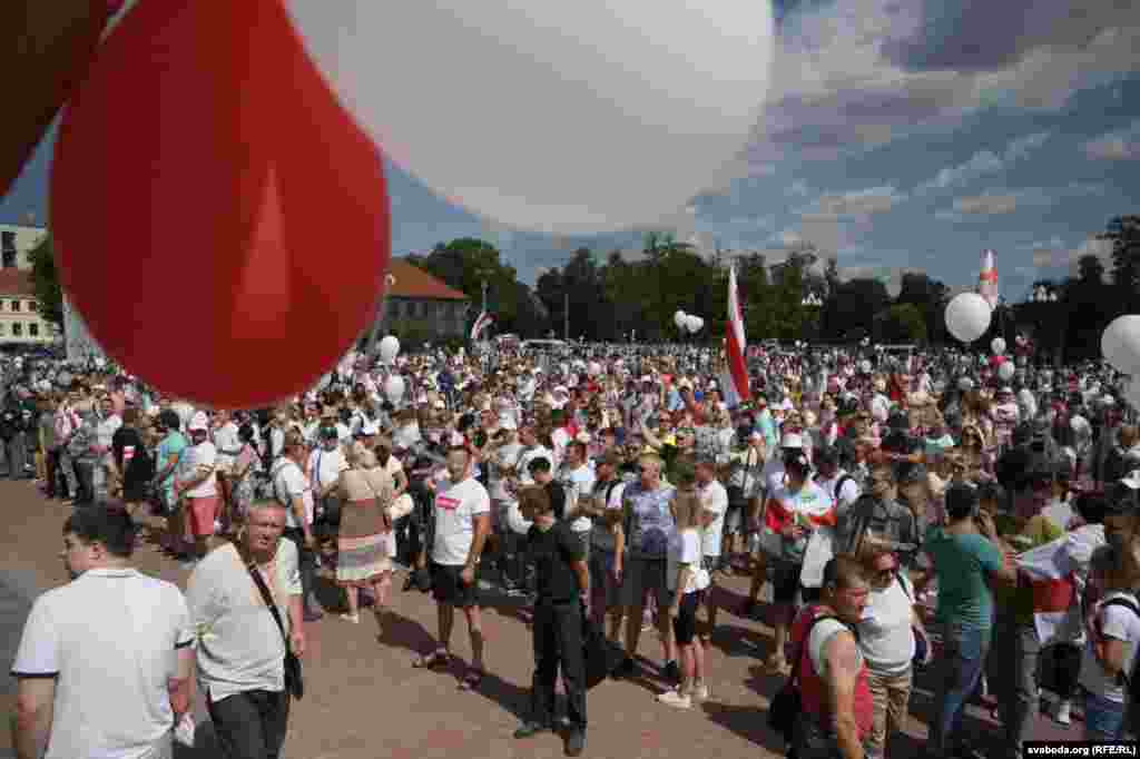 У Горадні на плошчы Леніна сабралася каля 10 тысяч чалавек з нацыянальнымі сьцягамі, балёнкамі, надпісамі «Лукашэнку ў адстаўку». Пачынаецца мітынг. Людзі скандуюць «Лукашэнка, сыходзь».