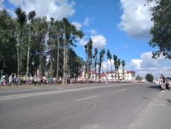 Дэманстранты зь бел-чырвона-белымі сьцягамі сабраліся на плошчы Леніна паабапал дарогі, потым пастаялі на набярэжнай возера, праз плошчу Перамогі выйшлі на цэнтральную вуліцу Камуністычную, дайшлі да краю мястэчка й вярнуліся ў цэнтар.