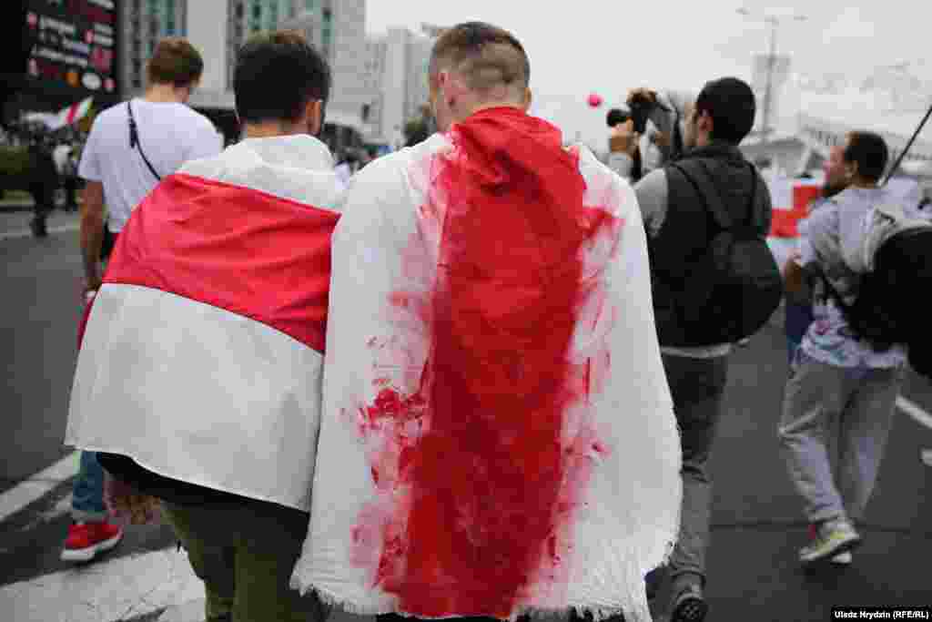 Частка людзей прыйшла ад Стэлы да Палацу Незалежнасьці, рэзыдэнцыі Аляксандра Лукашэнкі. Сюды яшчэ раней падагналі АМАП, вадамёты і іншую спэцтэхніку