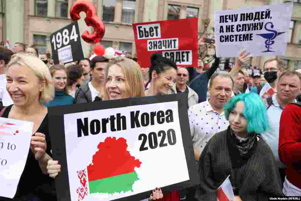 У Менску сёньня адбываецца Марш новай Беларусі. У пачатку дня падаў додж і здавалася, што акцыя будзе менш шматлікай. Але дождж скончыўся і вуліцы гораду запоўнілі дзясяткі тысяч людзей зь бел-чырвона-белымі сьцягамі. Самі ўдзельнікі мяркуюць, што яна больш шматлікая, чым тыдзень таму, 16 жніўня.