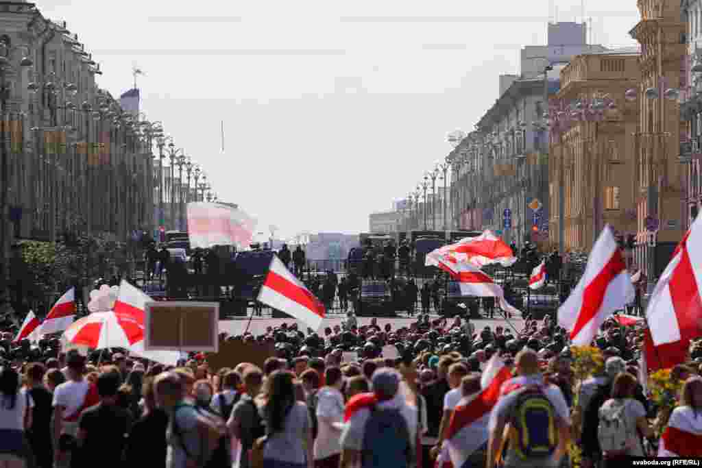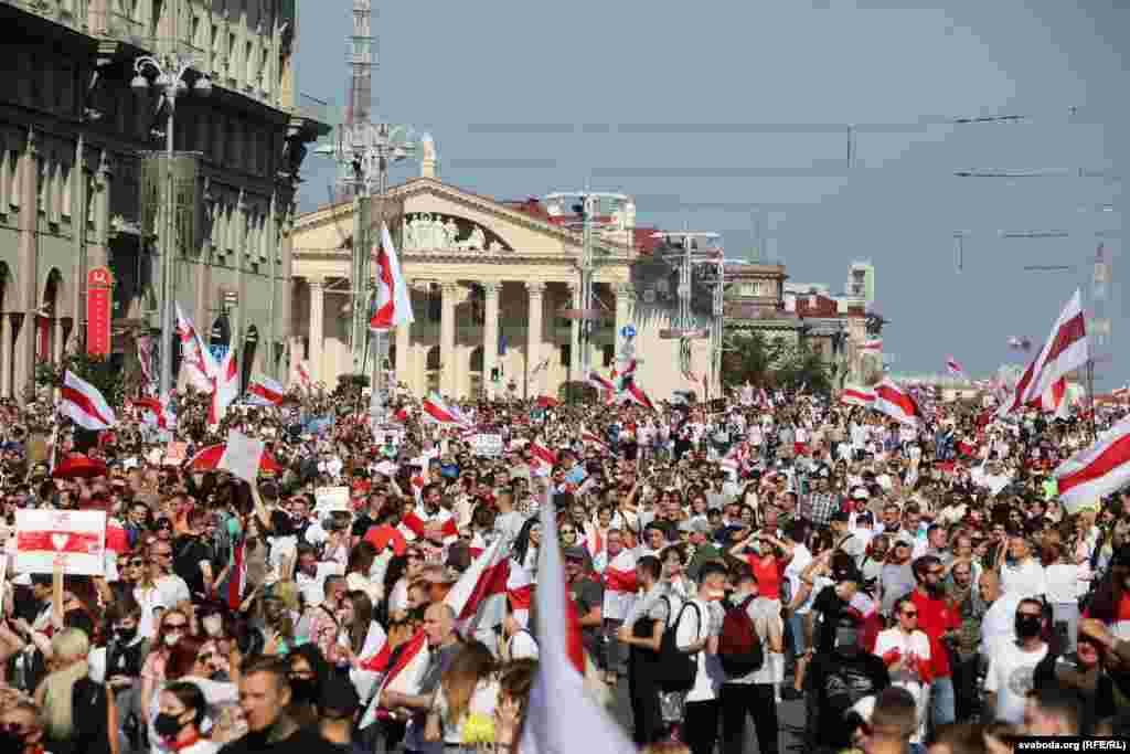 Маштабная акцыя пратэсту праходзіла трэцюю нядзелю запар. Па розных ацэнках, у ёй узялі ўдзел некалькі соцень тысяч чалавек. Калёна дайшла да Палацу Незалежнасьці, дзе яе сустрэў кардон сілавікоў з спэцтэхнікай. Сутыкненьняў не было.