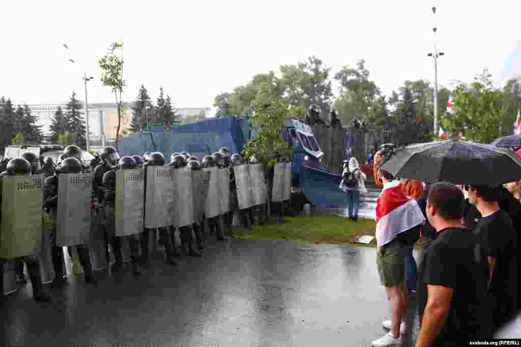 Многія ўдзельнікі маршу пачалі разыходзіцца з пачаткаму моцнага дажджу, які накрыў Менск.