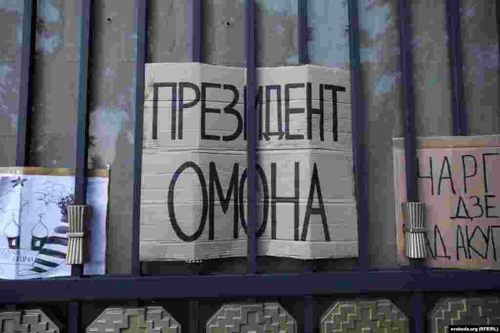 Многія пратэстоўцы прыйшлі з плякатамі і прадметамі пэрфомансу, у якіх абыгрывалі 66-ты дзень нараджэньня Аляксандра Лукашэнкі.