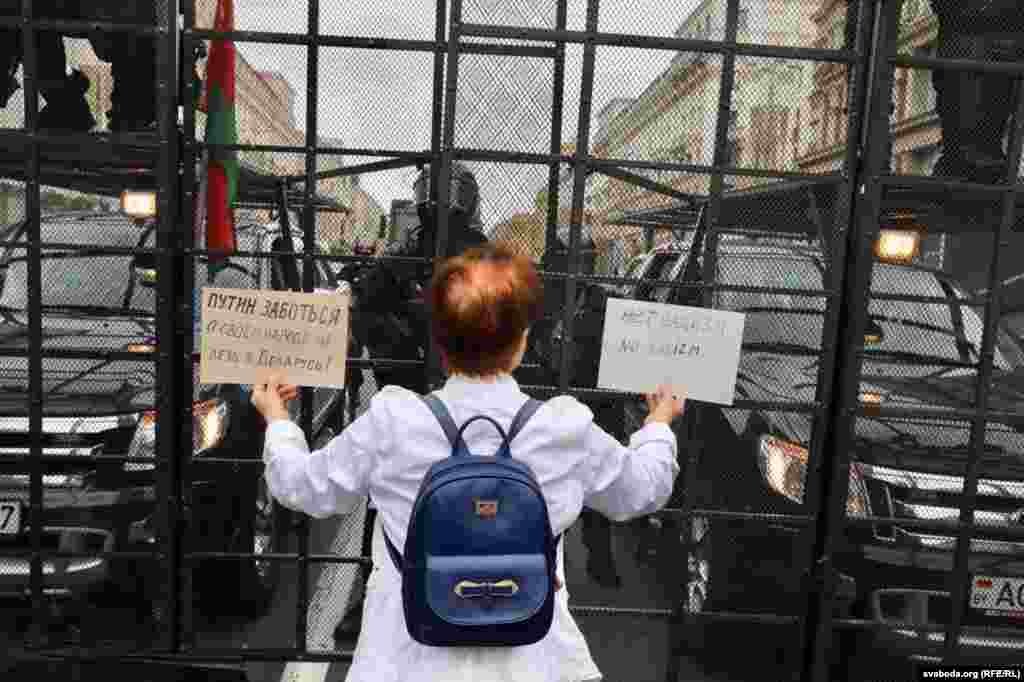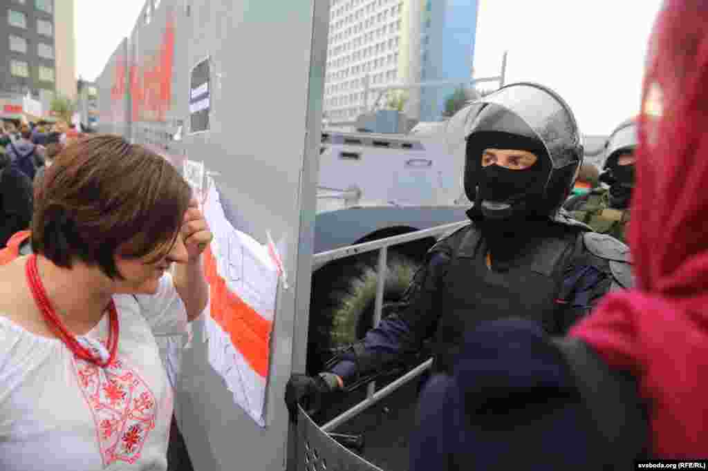 Яшчэ да пачатку акцыі сілавікі ачапілі калючым дротам стратэгічныя аб’екты — стэлу ля музэя гісторыі вайны і Палац Рэспублікі. Там стаяць вайскоўцы