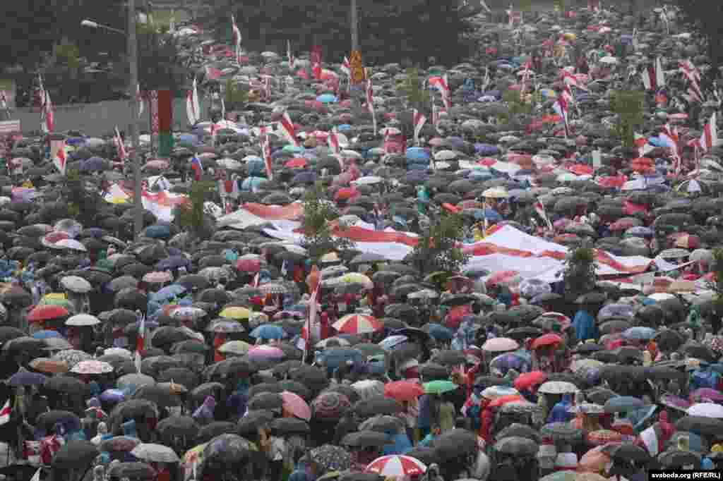 Калі пайшоў дождж, дэманстранты занялі ўсю паркоўку каля гатэлю «Вікторыя», якая знаходзіцца насупраць Палаца Незалежнасьці.