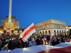 У акцыі ўдзельнічалі і тыя грамадзяне Беларусі, якія былі вымушаныя зьехаць ва Ўкраіну ў пошуках бясьпекі.
