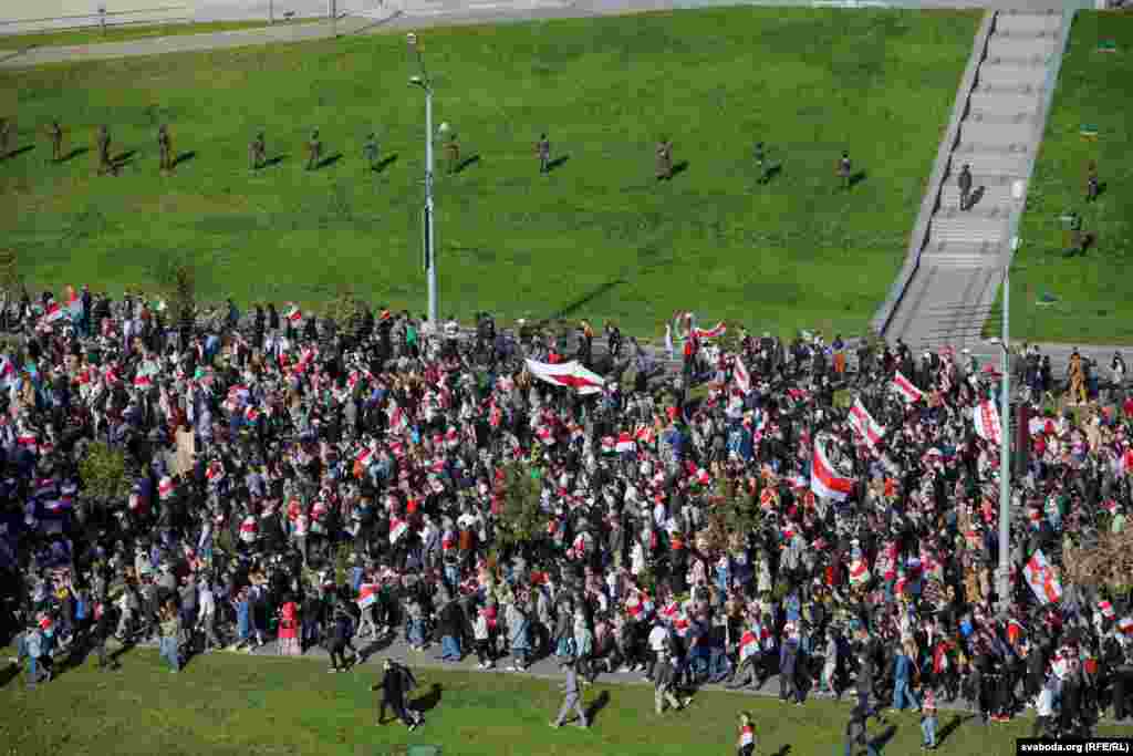 Від на стэлу з вышыні дае ўяўленьне пра маштаб пратэсту. У гэты момант людзі яшчэ зьбіраліся
