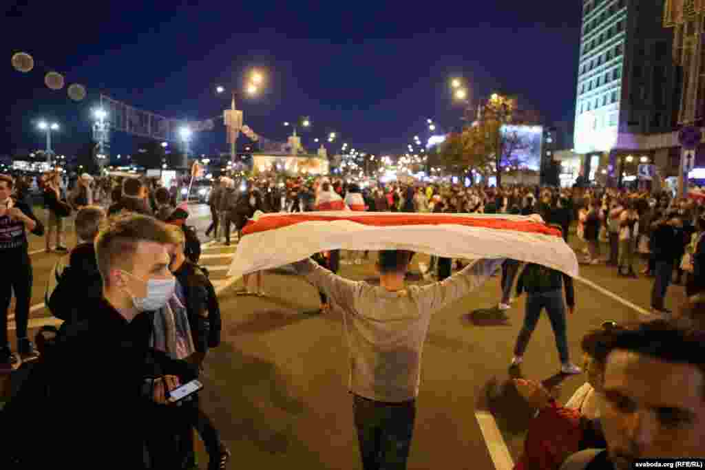 Увечары 23 верасьня на праспэкце Пераможцаў у Менску пачалі зьяўляцца арганізаваныя групы людзей