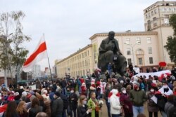 А 14-й гадзіне каля Чырвонага касьцёла на плошчы Незалежнасьці пачалі зьбірацца на традыцыйны панядзелкавы марш пэнсіянэры. Сёньня да іх вырашылі далучыцца і студэнты. Хутка калёна рушыла па праспэкце Незалежнасьці.