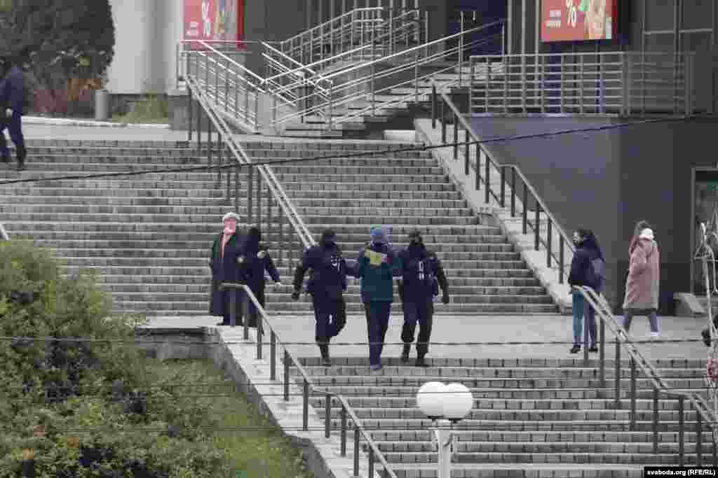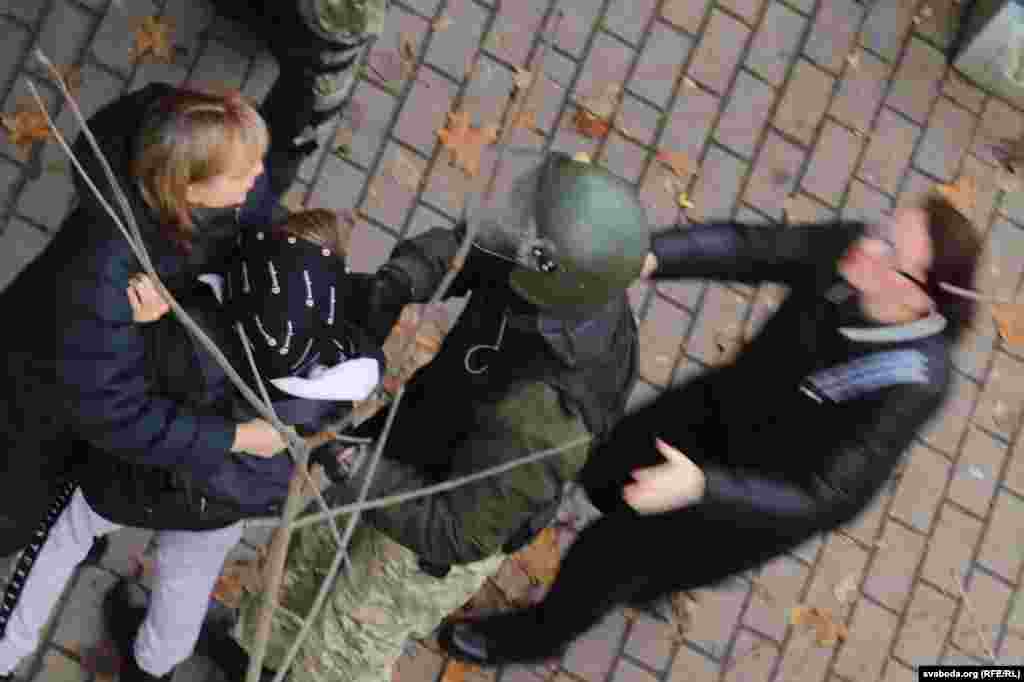 Пасьля невялікай размовы зь сілавікамі на чале з камандзірам менскага АМАПу Дзьмітрыем Балабам, сілавікі пачалі выцягваць людзей са шчэпкі, цягнуць у аўтазакі
