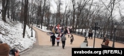 Удзельнікі акцыі прайшлі ад Міхайлаўскай плошчы, дзе месьціцца МЗС Украіны, праз Уладзімірскі парк на вуліцу Храшчацік.