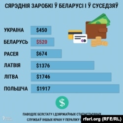 З астатнімі ж, акрамя Ўкраіны, суседзямі параўнаньне выглядала не на карысьць Беларусі. Традыцыйна заробкі ў Польшчы, Літве, Латвіі і Расеі былі вышэйшыя. Ужо летась беларускія заробкі амаль зраўняліся з Малдовай і Ўкраінай: