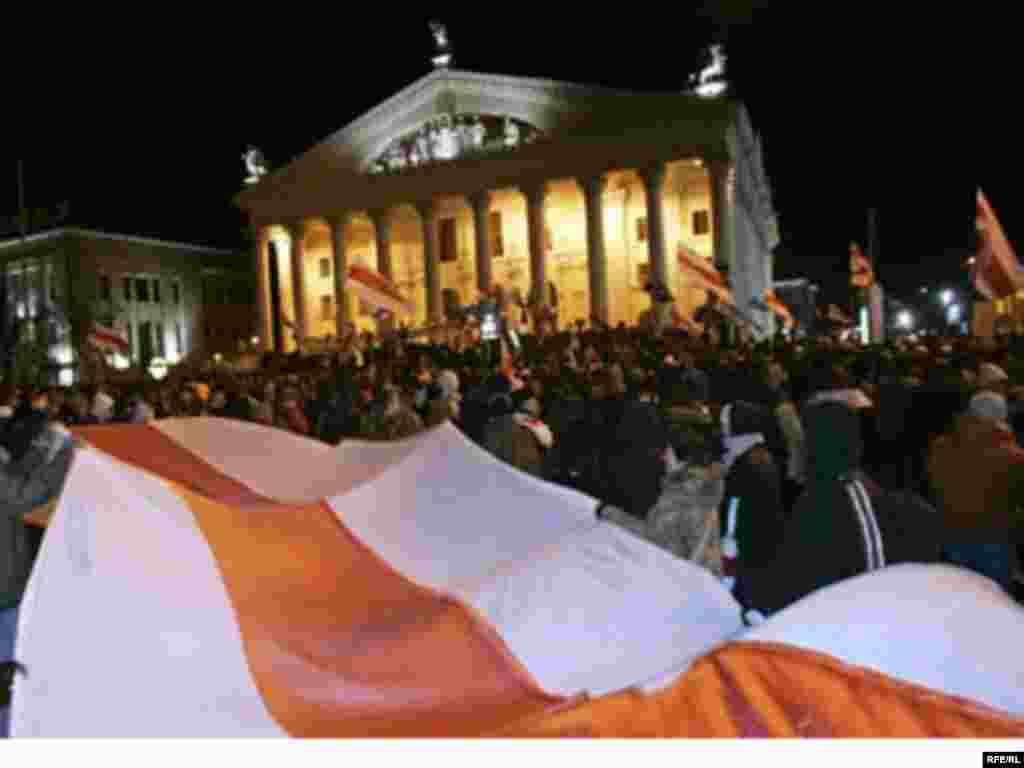 Дзясяткі тысяч чалавек на чале зь Мілінкевічам і Казуліным выйшлі на Кастрычнікую плошчу ў Менску ўвечары 19 сакавіка
