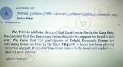 Паводле Daily Beast, «ХАМАС» патрабаваў ад Эўразьвязу адмовіцца ад падтрымкі Ізраілю, а таксама каб Ізраіль спыніў агонь у Сэктары Газа. Інакш пагражалі ўзарваць бомбу над Вільняй.
