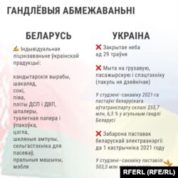 Пры гэтым Беларусь не абмяжоўвае паставак з Украіны крытычнай для сябе прадукцыі — мэталу, а таксама адходаў харчовай прамысловасьці, якія беларускія прадпрыемствы выкарыстоўваюць для вытворчасьці кармоў для жывёлы. У агульнай структуры ўкраінскага гандлю на беларускім рынку гэтыя віды прадукцыі займаюць адпаведна 10 і 13,4%.