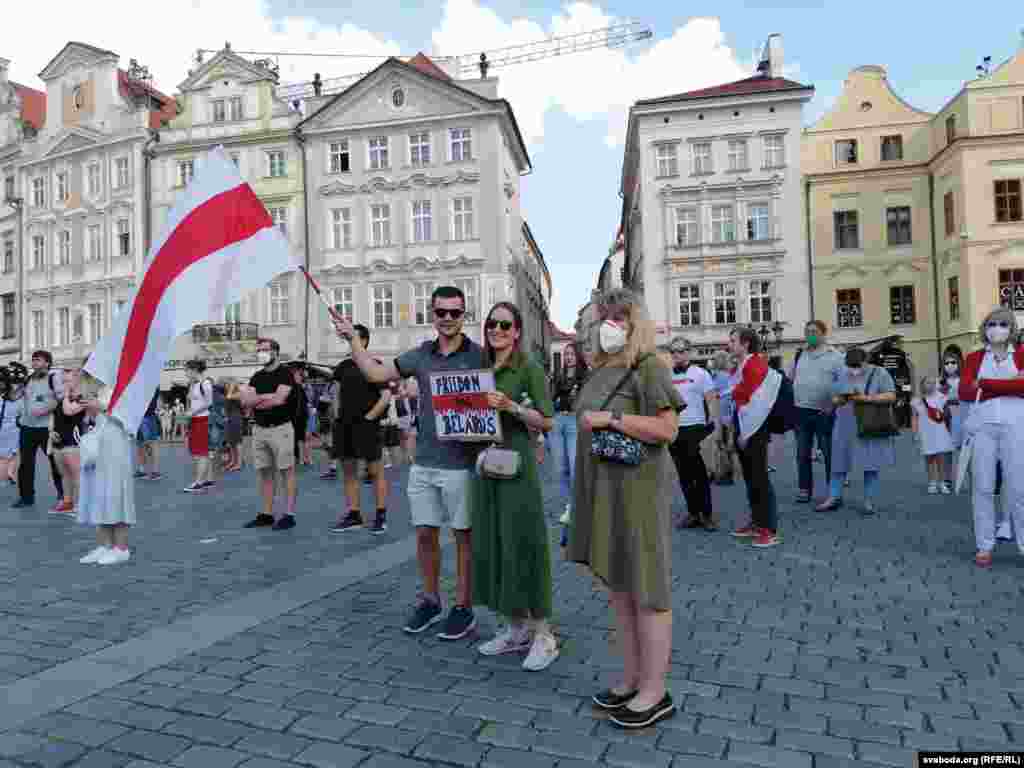 Некалькі сотняў чалавек на Старамесцкай плошчы ў Празе прымаюць удзел у акцыі салідарнасьці зь Беларусьсю.