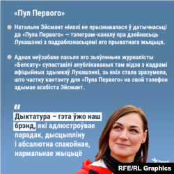 «Спачатку (Натальля Эйсмант. — РС) была нясьмелай ці рабіла выгляд, але даволі хутка асвоілася і стала літаральна часткай прэзыдэнцкай сям’і, — цытавала восеньню 2020 году расейскае выданьне „Медуза“ суразмоўцу, знаёмага з найбліжэйшым асяродзьдзем Лукашэнкі. — Усе яе загады бесьпярэчна выконваліся кіраўнікамі СМІ, міністрамі, ды ўвогуле любымі чыноўнікамі. Ніхто не рызыкаваў спытаць, яе гэта даручэньне ці Лукашэнкі. Усе загады выконваліся як ягоныя ўласныя. За гэта яе і ня любяць многія кіраўнікі».
