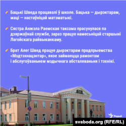 У Андрэя Шведа ёсьць сястра Анжэла Раемская. Яна таксама прасунулася па дзяржаўнай службе, зараз працуе намесьніцай старшыні Лагойскага райвыканкаму, дзе курыруе сацыяльную сфэру, спорт, адукацыю і ідэалягічную працу. Брат генэральнага пракурора Беларусі Алег Швед працуе дырэктарам прадпрыемства «Мэдтэхнацэнтар», якое займаецца рамонтам і абслугоўваньнем мэдычнага абсталяваньня і тэхнікі.