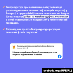 «На самай справе ідзе вайна, гібрыдная вайна, — сказаў Андрэй Швед у эфіры тэлеканалу „Беларусь 1“. — Мэта адна — зьнішчыць нашу дзяржаву. Адрэзаць язык, забіць лідэра дзяржавы, забіць службовых асоб. Яны пра гэта самі адкрыта кажуць. Мы прыйдзем да ўлады і будзем забіваць. Будзем выразаць цэлыя групы. А што гэта, як не нацызм і генацыд? Вось праводзьце паралелі. Па сутнасьці, гэта той жа самы нацызм. І таму яны хочуць, сказіўшы гісторыю, паказаць, як быццам робяць усё правільна. Ідзе спроба схаваць іх сутнасьць сапраўдную, антычалавечую, антыгуманную, зьвязаную толькі з тым, што акрамя гвалту, акрамя крыві, хлусьні і іншых дзеяньняў, якія зь юрыдычнага пункту гледжаньня можна вызначаць як экстрэмізм, на большае яны ня здольныя».