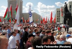 Атмасфэра была ўзьнёслая. Удзельнікі мітынгу падтрымалі патрабаваньне каардынатаркі аб’яднанага штабу Марыі Калесьнікавай аб адстаўцы Аляксандра Лукашэнкі.