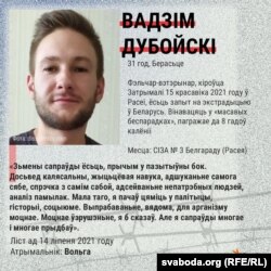 31-гадовы Вадзім Дубойскі пад вартай з 16 красавіка. У жніўні 2020 яго пабілі ў падвалах Дома правасудзьдзя ў Берасьці, а затым ён стаў фігурантам крымінальнай справы паводле артыкулу 293 Крымінальнага кодэксу. Ён уцёк у Расею, адтуль плянаваў перабрацца ва Ўкраіну, але быў затрыманы расейскімі памежнікамі за спробу пераходу мяжы па-за пунктам пропуску.