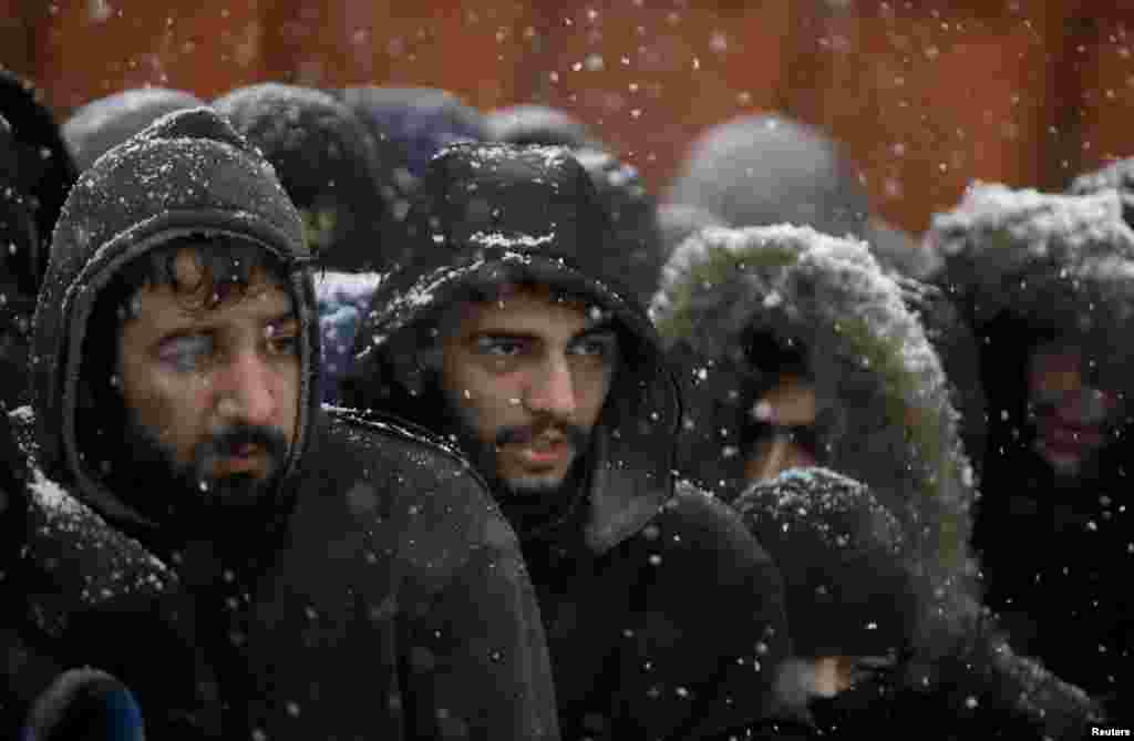 Мігранты, якія знаходзяцца каля лягістычнага цэнтру ў Горадзенскай вобласьці на беларуска-польскай мяжы, трапілі пад першы сьнег гэтай восені ў Беларусі.