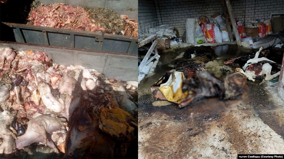 «Здохлых кароў прымусілі грузіць на машыны „хімікаў“, прычым у старых пальчатках, — кажа крыніца. — Днямі ў інтэрнэце зьявіліся здымкі з гэтай фэрмы, і туды прыехала разьбірацца пракуратура. Міліцыя ўзмоцнена шукае тых, хто з „хіміі“ мог даслаць гэтыя здымкі».