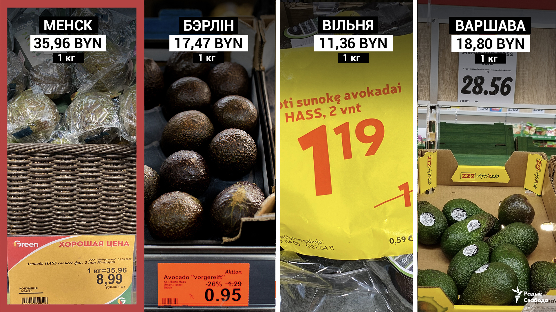 Аказалася, што, амаль усе абраныя тавары даражэйшыя ў Беларусі. Сярод такіх — дзіцячыя падгузьнікі, шакаляд, кава молатая, аліўкавы алей, памідоры, авакада, перац салодкі, капсулы для пральнай машыны, какосавыя цукеркі. Прычым некаторыя пазыцыі ў Беларусі даражэйшыя ў разы: так, паўкіляграмовы пачак кавы ў менскім гіпэрмаркеце каштуе 38 рублёў, у Вільні — 21, а ў Варшаве і Бэрліне — менш за 15. Авакада ў Менску каштуе амаль 36 рублёў, у Варшаве і Бэрліне — удвая менш, каля 18 рублёў, а ў Вільні на зьніжцы ўвогуле каля 11 з паловай рублёў.