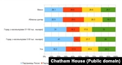 Адказы на пытаньне пра выбар для Беларусі падчас вайны прадстаўленыя на графіку са справаздачы Chatham House.