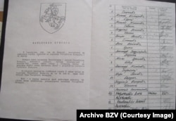 Прысягу зачытаў старшыня БЗВ Мікола Статкевіч, прысутныя паўтаралі за ім: