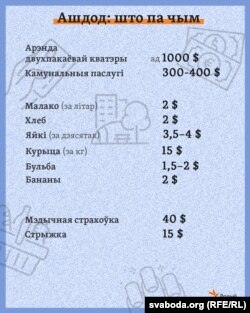 Андрэй называе цэны на асноўныя прадукты: самы танны хлеб каштуе 2 даляры, прыкладна столькі ж літар малака, дзясятак яек — 3,5-4 даляры.