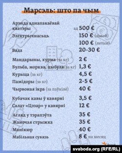 «У Беларусі ўсё ж кубак кавы каштаваў 1,5 эўра, а бляшанка — 4-5 эўра. Салат кшталту „Цэзара“ ў кавярні каштуе 12 эўра. Мясная страва менш за 20 эўра ня будзе».
