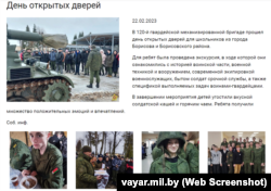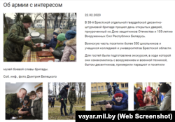 «У вайсковай частцы арганізавалі вучэбныя месцы, на якіх госьці патрэнаваліся ў разьбіраньні-зьбіраньні АК-74», — піша «Ваяр».