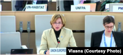 «Як пра гэта паведамляецца Вярхоўным камісарам, існуюць падставы меркаваць, што сыстэматычныя, шырока распаўсюджаныя сур’ёзныя парушэньні правоў чалавека чыніліся і чыняцца ў Беларусі, таму мы падкрэсьліваем, што становішча з правамі чалавека ў Беларусі пагаршаецца», — сказала прадстаўніца Эўразьвязу.