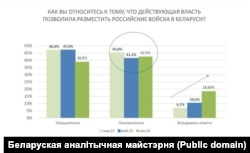— Прыгадаю адказы на пытаньне пра стаўленьне да разьмяшчэньня расейскіх войскаў у Беларусі. Долі станоўчых і адмоўных адказаў практычна супадаюць. Гэта клясычны спліт, падзел грамадзкай думкі, кожная з ацэнак складае прыкладна па 40%. Ці можна ўявіць сабе ГУЛАГ, у якім думкі па значным палітычным пытаньні падзяліліся б пароўну, але, галоўнае, — пра гэта вязьні лягеру заявілі б уголас?