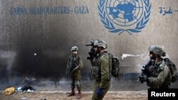 Ізраільскія вайскоўцы правялі журналістаў па 700-метровым тунэлі. Ён пралягае на глыбіні 20 мэтраў пад зямлёй. Непасрэдна пад будынкам штаб-кватэры БАПОР знаходзяцца памяшканьні, у якіх знайшлі сэрвэры і іншую кампутарную тэхніку. Паводле ізраільскіх вайскоўцаў, гэта быў цэнтар разьведкі ХАМАС. Таксама падземныя службовыя памяшканьні знайшлі пад будынкам разьмешчанай непадалёк школы, якая знаходзіцца ў распараджэньні агенцтва ААН.