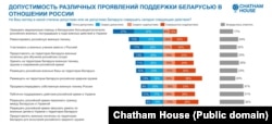 Графік 3. Якія формы падтрымкі Расеі з боку Беларусі вы лічыце дапушчальнымі? (Chatham House)