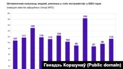 У 2021 годзе колькасьць палітвязьняў расла выбухова. Тады былі прызнаныя палітвязьнямі 797 чалавек, у 2022-м — 889, у 2023-м — 640. За першы квартал бягучага году палітвязьнямі былі прызнаныя 99 чалавек.